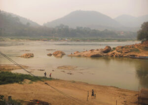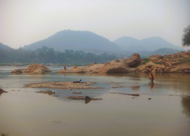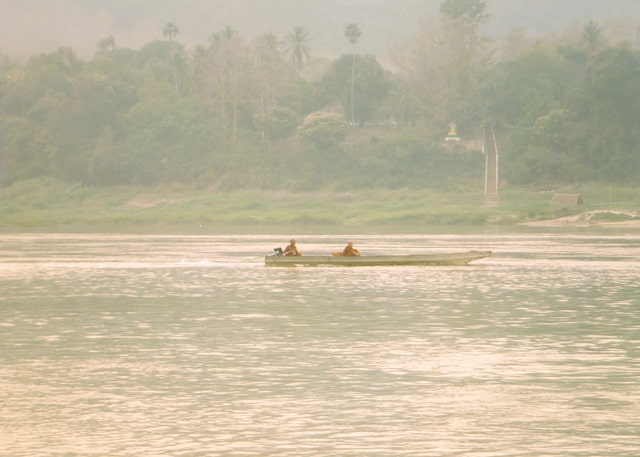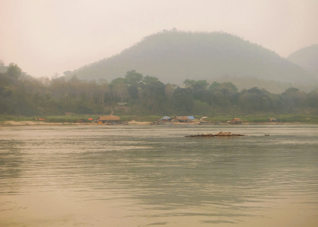 メコン川、ボートがちょうど着いたみたい。こんにちは~!