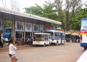 バスから降りる人と、これから乗る人でゴチャゴチャしていました。バスは30分遅れで出発しました。