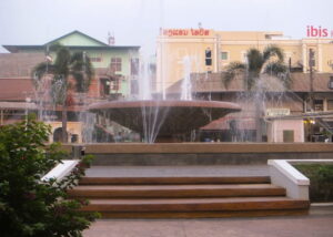 ナンプー広場の噴水です。水が吹きあがり暑さを和らげてくれる感じがします!