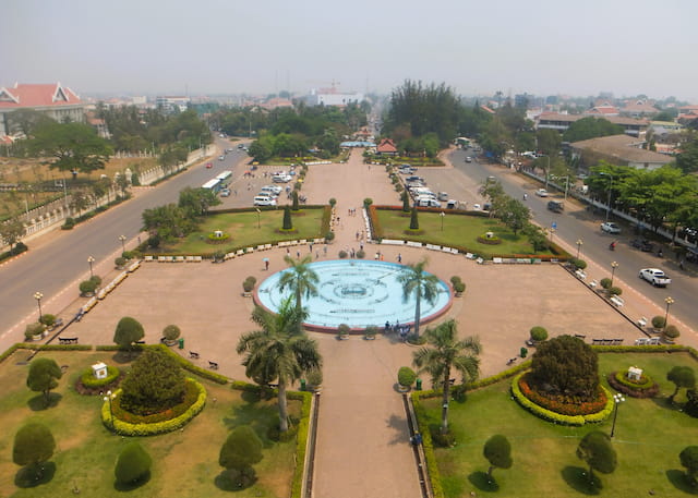 パトゥーサイからのビュー!噴水は吹きあがっていませんでしたが、公園は整備されてきれいでした!
