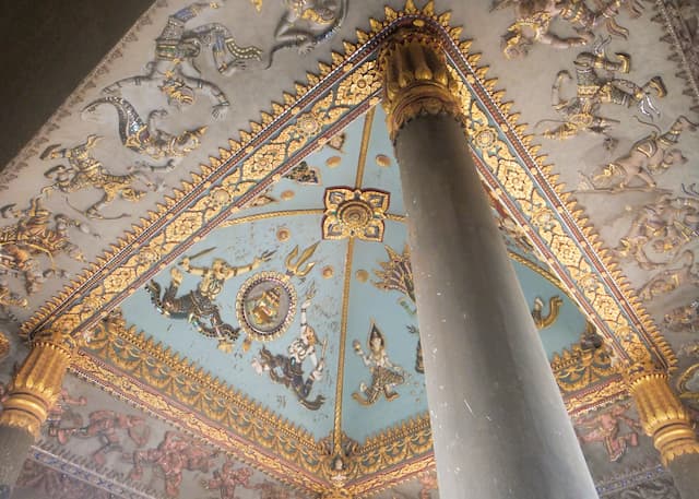 パトゥーサイの中は神々の彫刻やモザイクが素敵。