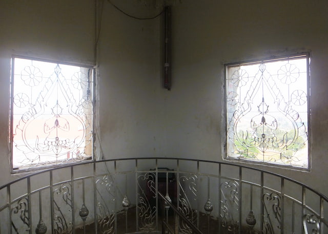 螺旋階段を上った所、一番上は屋内になっています。