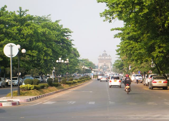 ラオスの凱旋門を横目にアルーンレジデンスホテルへ向かう