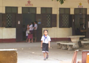 学校がありました。ラオスの小学校と女の子。