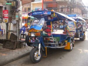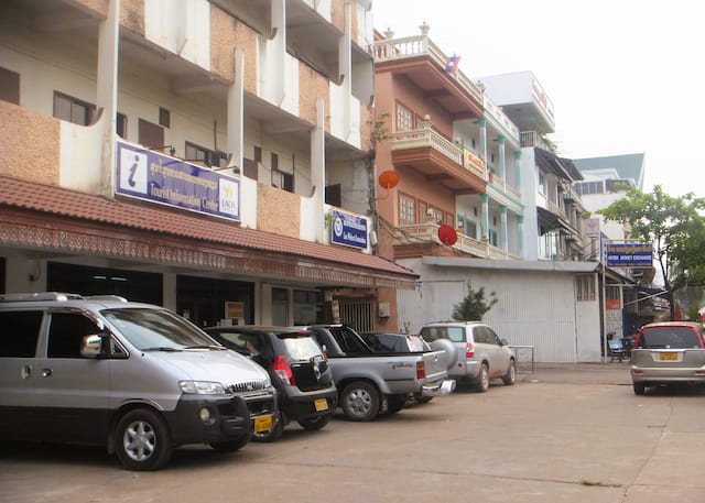 ラオスのソンテオは派手でいかつくかっこいい!この辺りの旅行会社でルアンパバーン行きのチケットを買いました。