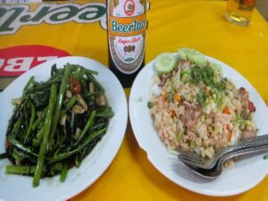 のどが渇いたのでちょっとビアラオ飲んじゃいます!空心菜炒めとチャーハンも食べました!