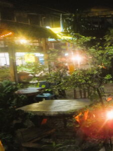 メコン川をぶらりしてからレストランに入りました。屋外なので足元に蚊取り線香を置いてくれましたよ。